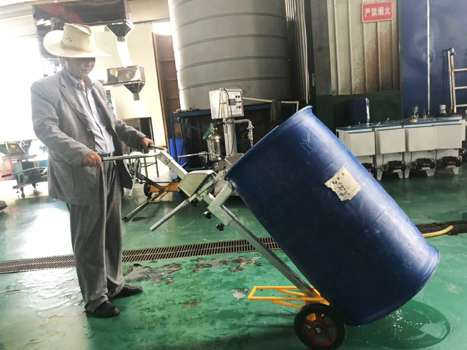 幾百公斤重的大桶原料一個人就能輕松移動,省時省力
