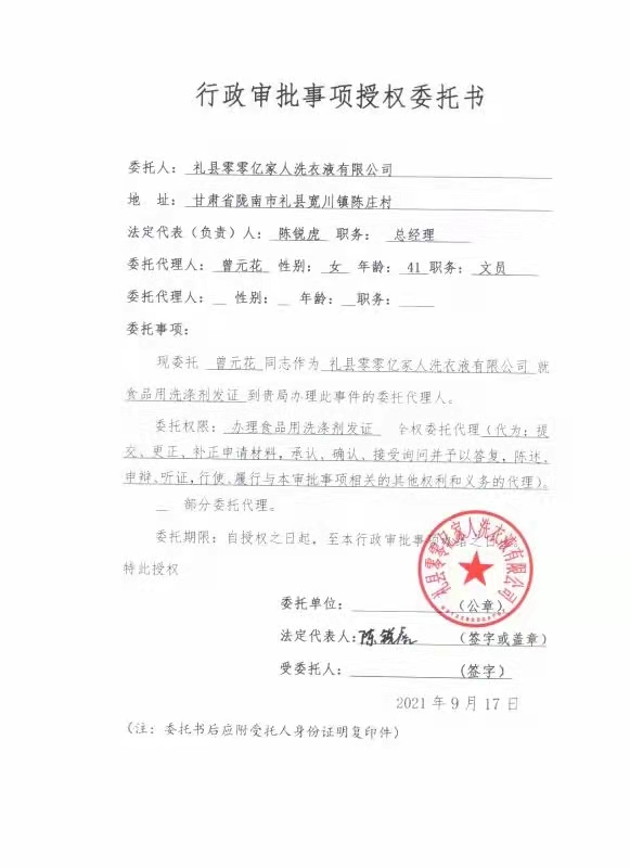 富達日化為甘肅日化廠陳總洗潔精生產(chǎn)許可證申報成功