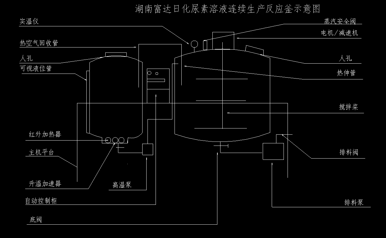 尿素溶液連續(xù)生產(chǎn)設(shè)備,同時間提高產(chǎn)能200%,節(jié)省耗電量40%以上,節(jié)省人力成本200%,更重要的避免了偽劣設(shè)備直接加熱危害人身安全的隱患,同克服了偽劣設(shè)備發(fā)熱管直接接觸尿素溶液產(chǎn)生新的金屬離子導(dǎo)致尿素溶液不合格引發(fā)柴油發(fā)動機損壞的頑疾。