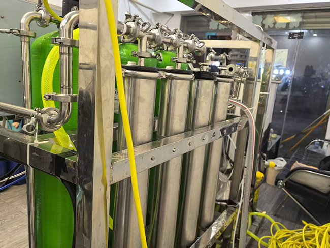 三是外觀(guān)貌似標(biāo)準(zhǔn)化配置的水處理設(shè)備中竟然沒(méi)有必備的反滲透膜,二是用價(jià)值每根17元的pp棉代替了每根價(jià)值上千元的反滲透膜,導(dǎo)致水質(zhì)量不達(dá)標(biāo),水處理中竟然沒(méi)有原水泵,沒(méi)有高壓泵,沒(méi)有電導(dǎo)率檢測(cè)儀,而是自來(lái)水管自流到簡(jiǎn)易水處理中,當(dāng)環(huán)境溫度高時(shí)產(chǎn)品容易發(fā)臭變質(zhì)。