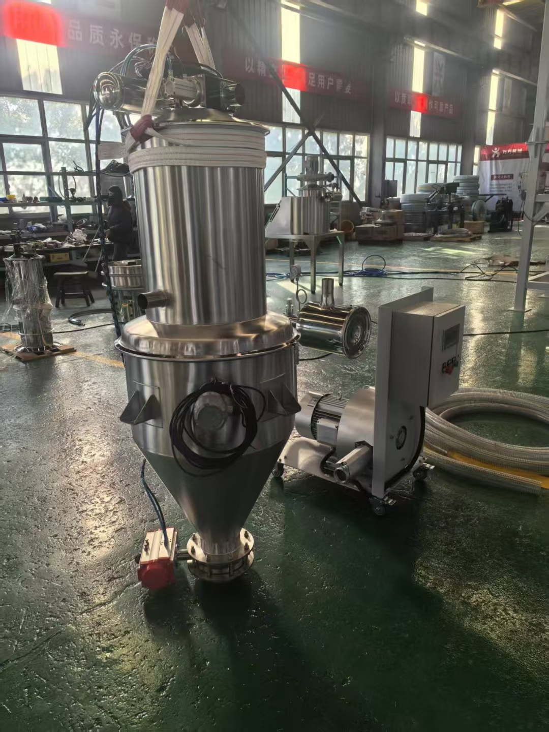 一種真空無(wú)塵粉狀原料加料機(jī)的使用,不僅有利于人身健康,更重要的是提高幾倍的加料速度,價(jià)格不貴,省時(shí)省力少危害,用過(guò)的老板都說(shuō)好!