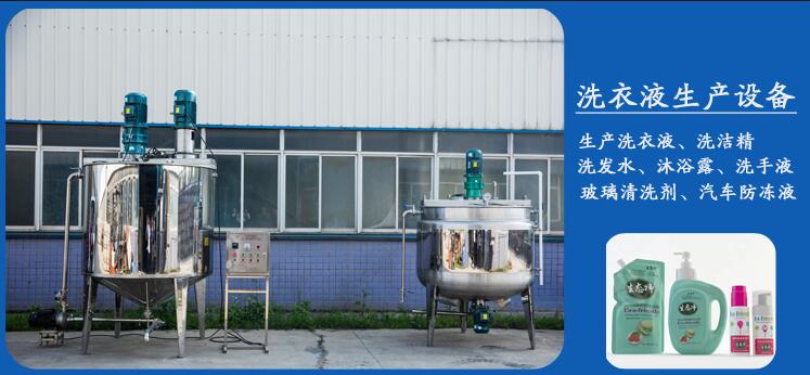 市面上很多洗衣液設(shè)備靠機(jī)械外力單純攪拌成型的設(shè)備,單純攪拌成型的缺點(diǎn)就是產(chǎn)品只是暫時(shí)分散,原材料達(dá)不到充分的分散和乳化,產(chǎn)品很容易產(chǎn)生分層、沉淀,變質(zhì)變臭的現(xiàn)象。 正規(guī)洗衣液設(shè)備廠家全部采用的是機(jī)械乳化工藝,電機(jī)帶動(dòng)不銹鋼剪切乳化頭,可以把原料進(jìn)行充分乳化和溶解,做出的產(chǎn)品保質(zhì)期長(zhǎng),顏色均勻、統(tǒng)一,不會(huì)分層、沉淀,完全達(dá)到國(guó)家要求的保質(zhì)期限。