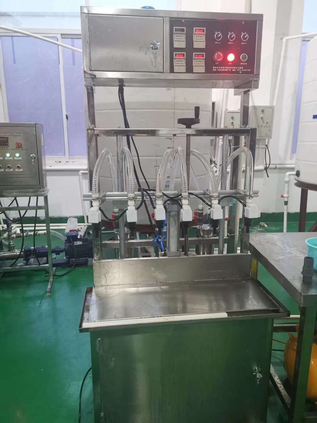 本液體灌裝機由湖南省富達日化有限公司研發(fā),灌裝量在300毫升-25公斤范圍內均可自由調節(jié),克服了傳統(tǒng)灌裝機灌裝不同范圍內產(chǎn)品需要多臺灌裝機的缺陷,設備接觸物料部分采用防腐材料制作,堅固耐用,操作簡便,適合于灌裝84消毒液、廁所清洗劑等具有腐蝕性的流動性液體和玻璃清洗劑、車用尿素、防凍液、精華液等瓶裝和桶裝產(chǎn)品。