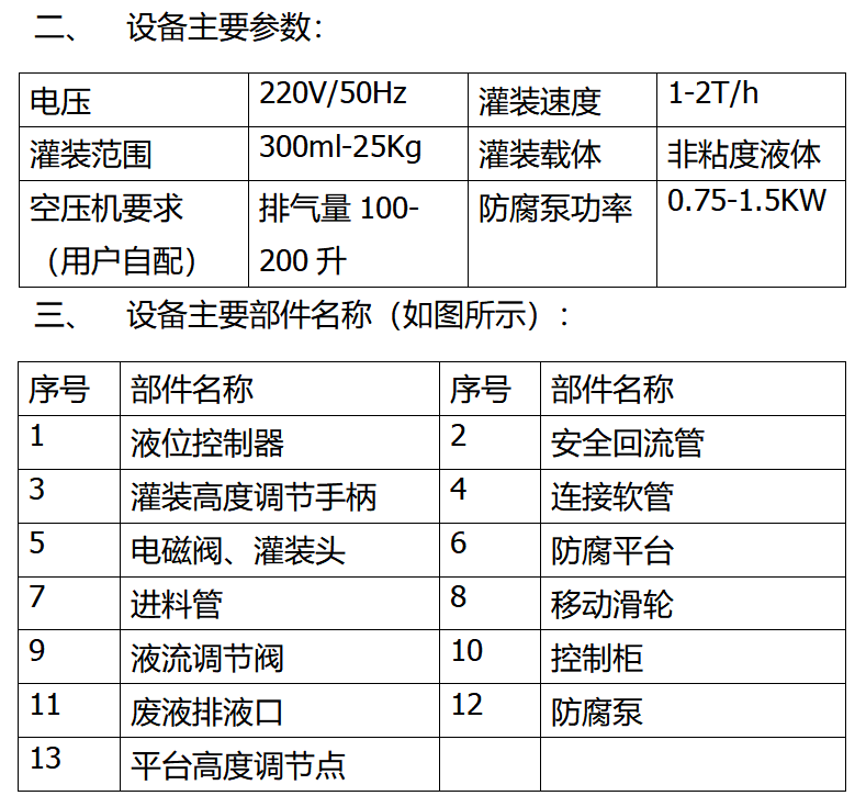 二、 設備主要參數(shù):