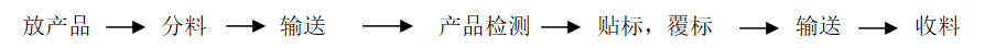 3, 產(chǎn)品在輸送帶的帶動(dòng)下,自動(dòng)向右側(cè)貼標(biāo)機(jī)構(gòu)運(yùn)行;