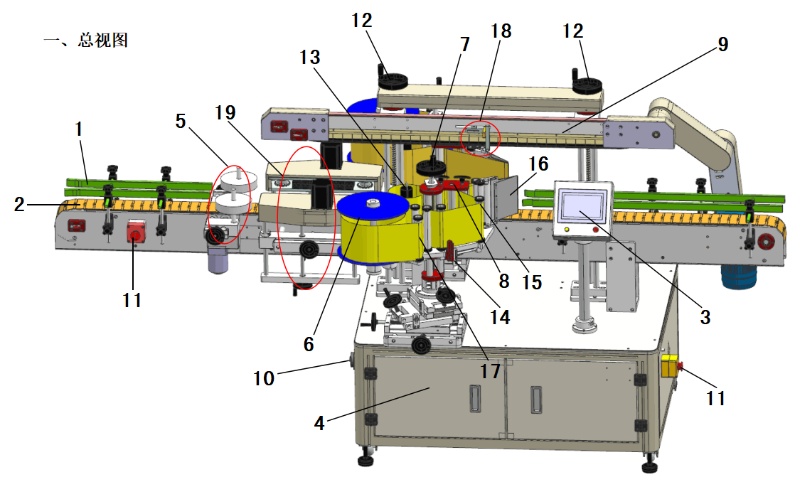 9、壓頂機構(gòu):用于壓緊瓶子,讓瓶子保持垂直從輸送帶過來保證貼標(biāo)精度。