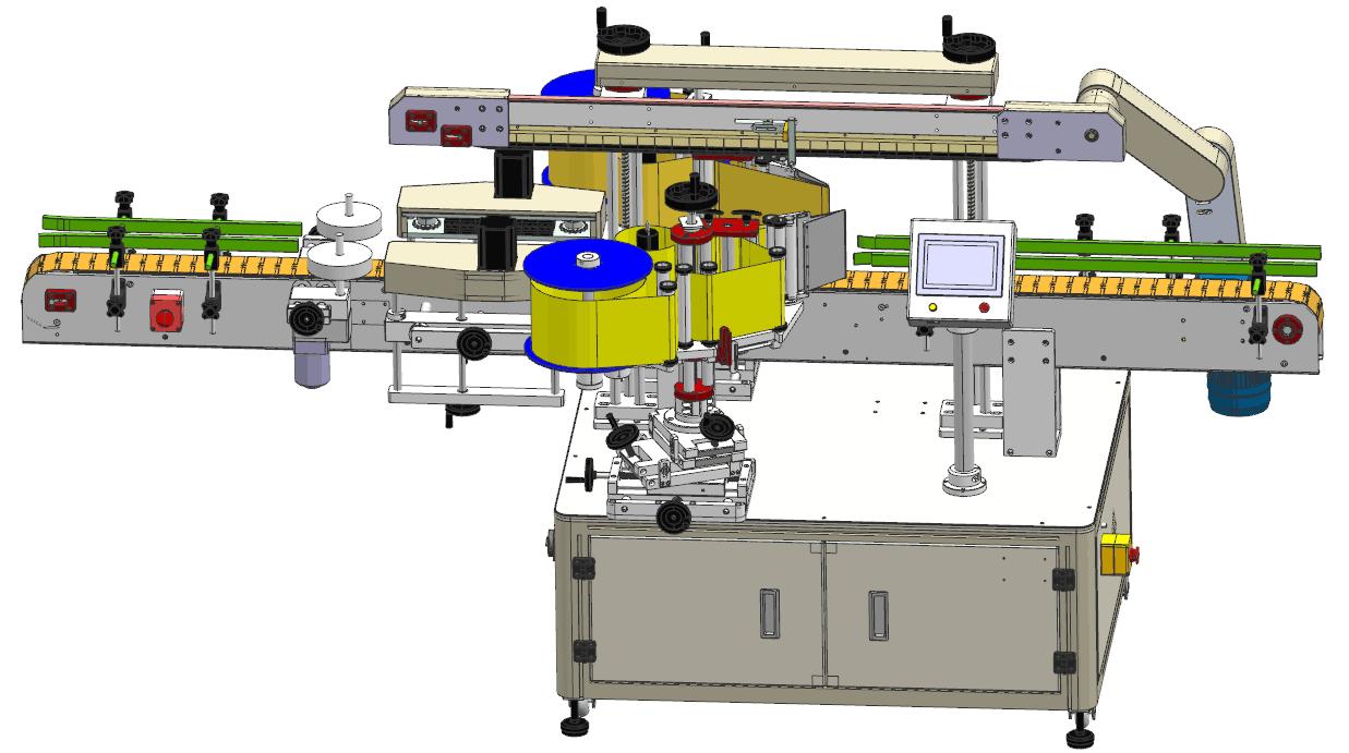 可用于各種圓柱形物品的全周/半周、正背雙標(biāo)貼標(biāo),如紅酒、葡萄酒、方瓶,八角瓶等的貼標(biāo);如另配色帶打碼機,可實現(xiàn)貼標(biāo)同時打印生產(chǎn)批號等信息。