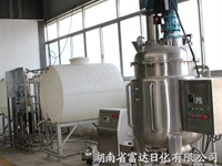 2)洗潔精設(shè)備結(jié)構(gòu):包含攪拌裝置,分散剪切裝置,循環(huán)乳化裝置,減泡裝置,小樣回流系統(tǒng),夾層水域恒溫裝置,產(chǎn)品溫顯裝置,控制箱等;