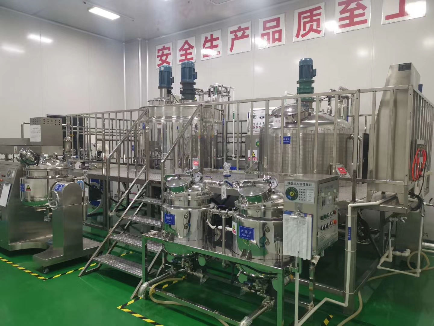 設(shè)備多功能:能一機(jī)多用生產(chǎn)洗潔精,84消毒液,洗衣液,洗發(fā)水,沐浴露等100多種液態(tài)洗滌產(chǎn)品