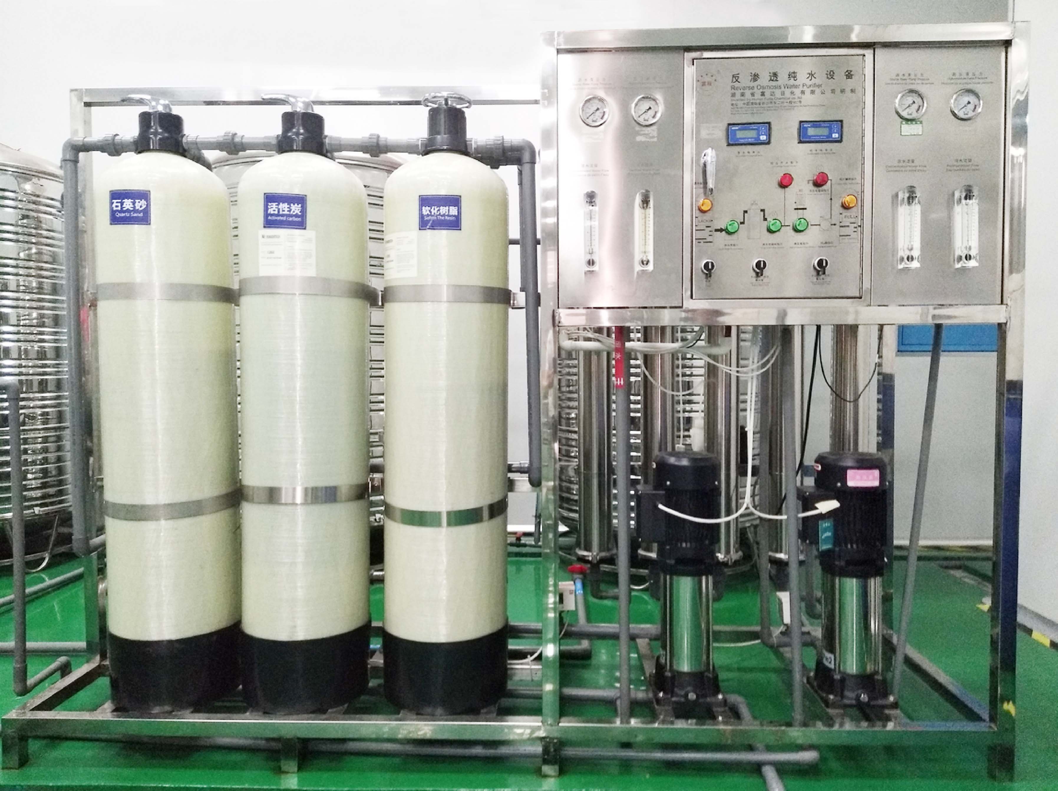 2、清洗完畢后,用預(yù)處理水將反滲透裝置沖洗干凈。